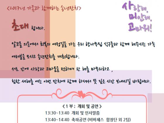125 2017³â °¡Á·¼Û³âȸ "»ç¹Ì°í" ÃÊûÀå Ç⳪¹«Áý 2017-11-27 2542